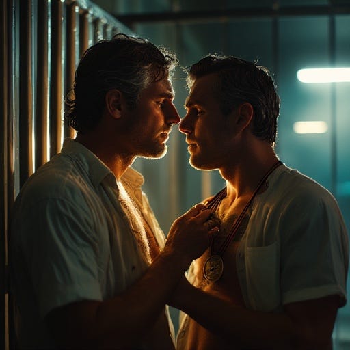 We stood suspended, two men outlined by hospital legend and silver moon glare, the city’s breath tight around us. I let myself imagine the future: a shared ritual, a secret held between bones and badge clip, and the risk of being more than rumor, more than survivors. The ache of that promise sent heat pooling low in my belly—not lust yet, but the build-up, the only start that ever means something.